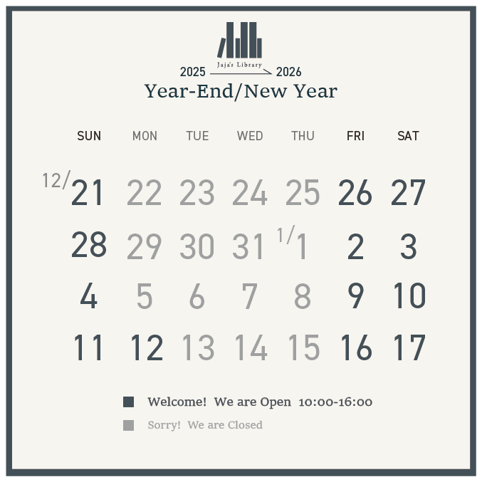 年末は12/28(日)まで、年始は1/2(金)から。1/12(成人の日)も営業します。