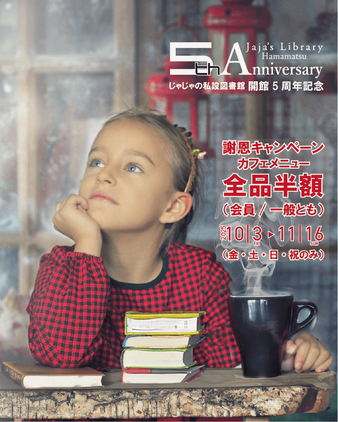 10/3(金)~11/16(日)カフェメニュー全品半額 2025 9 26 10/3(金)~11/16(日)カフェメニュー全品半額 当館は10月で開館5周年を迎えます。これもひとえにご利用者お一人お一人のおかげです。有難うございます。 そこで、日頃のご愛顧に感謝を込めて、10/3(金)~11/16(日)の営業日、カフェメニューを全品半額(会員価格/一般価格とも)で提供させていただきます。 是非、ご利用ください! https://jaja-lib.com/wp-content/uploads/2025/09/名称_未_設定.mp4 (おっと、手が3本あるwww) ← 前の記事 News一覧に戻る 次の記事 →